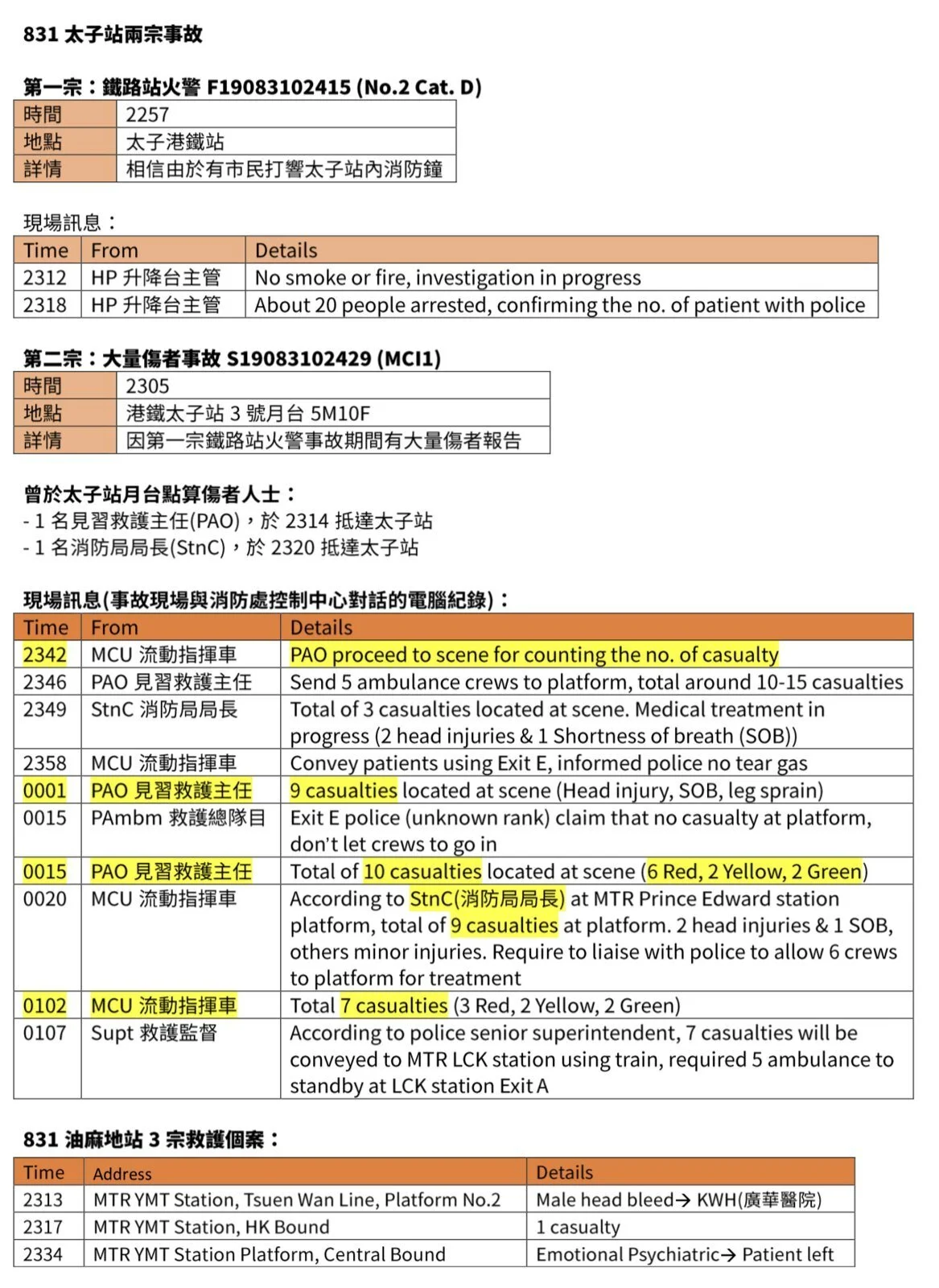 11/ According to the Fire Services Department, a team of paramedics arrived at Prince Edward MTR station exit B1 at 23:14, but was told by the police officer stationed there that there's no casualty at the scene. The paramedics subsequently entered the station at 23:30.