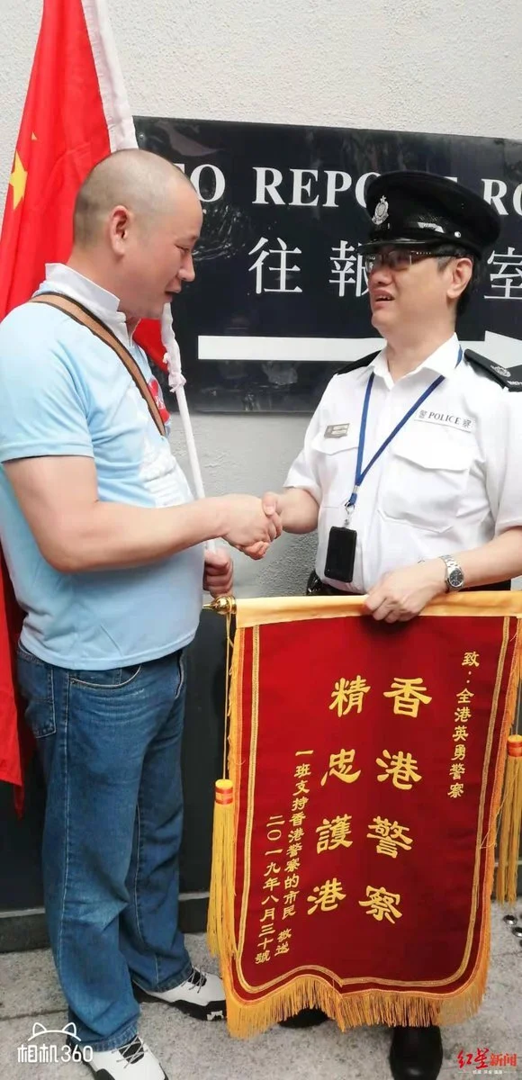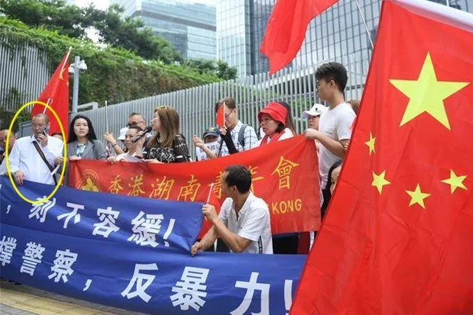3/ It seems that Xu is indeed a Hunan native currently living in #HongKong as suggested in the Xinhua article. Xu appears to be a "patriotic" pro-police "activist". There are plenty of photos of him participating in different anti-US and pro-government rallies.