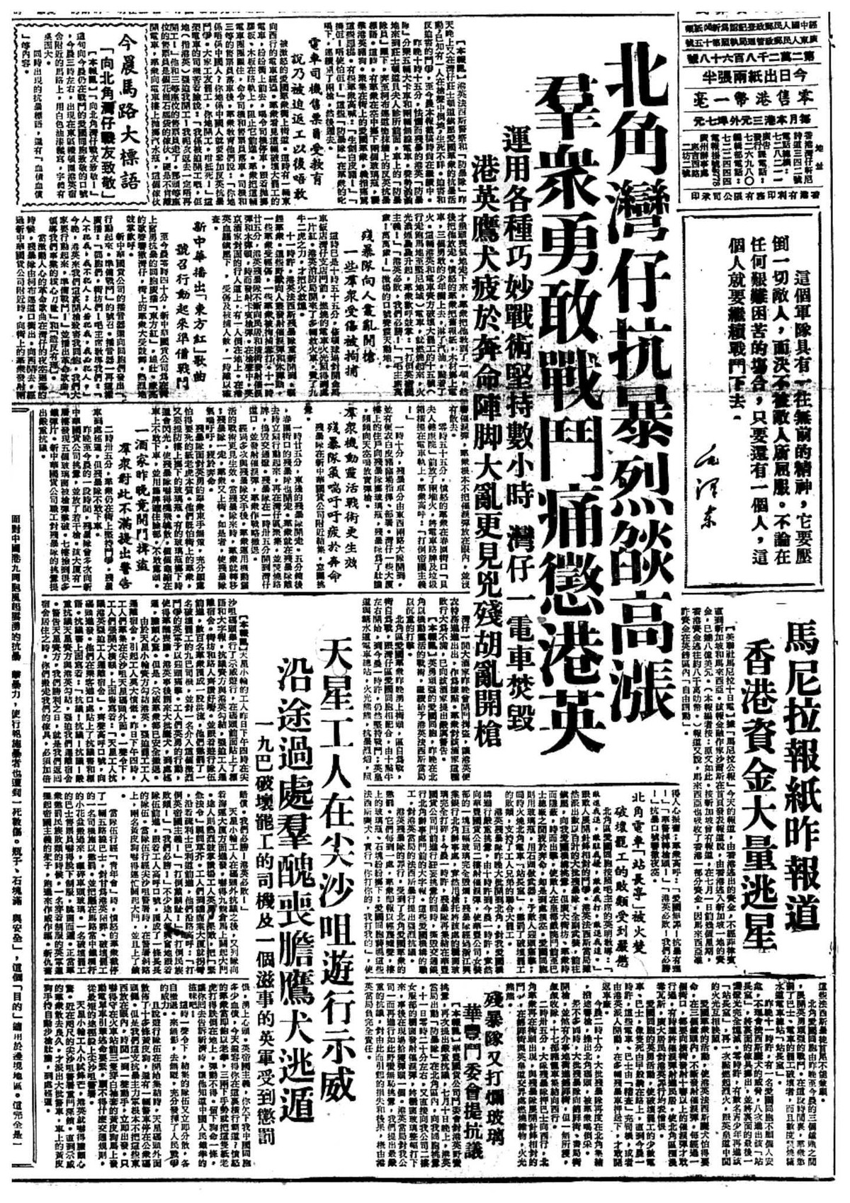 2/ Cette une de Ta Kung Pao était littéralement un appel aux armes ciblant les étudiants pour qu’ils renversent(鬥倒) l’administration coloniale Britannique.